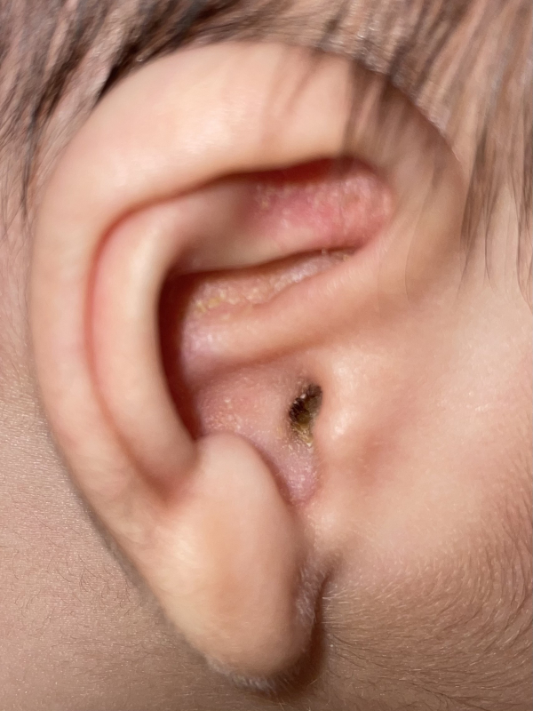 外耳のあたりは、滲出液が出ていてのものではないかなとも思いました。