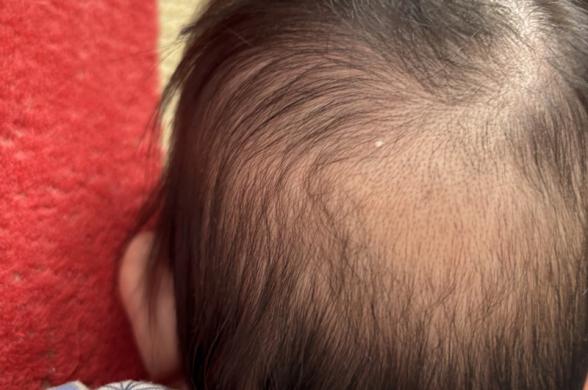 もうすぐ5ヶ月になる赤ちゃんですが、数日前から頭皮の根ハゲの部分に1つぽつっと白い点の塊が現れました。