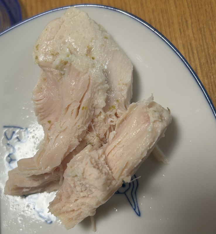 お写真で拝見をするだけでは、こちらでも判断が難しいのですが、召し上がられた食感は胸らしく少しパサつくような感じはありましたか?