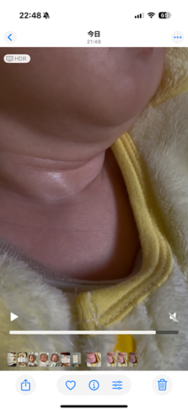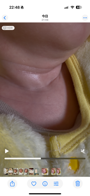 赤ちゃんの首元が凹み心配でしたね。
