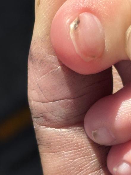 3ヶ月赤ちゃん、足の親指の爪の中のゴミ