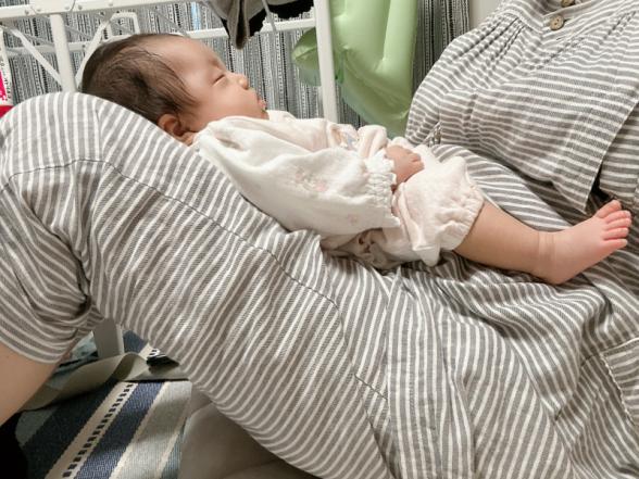 昼間は布団に降ろすとすぐに泣くので、抱っこしていました。