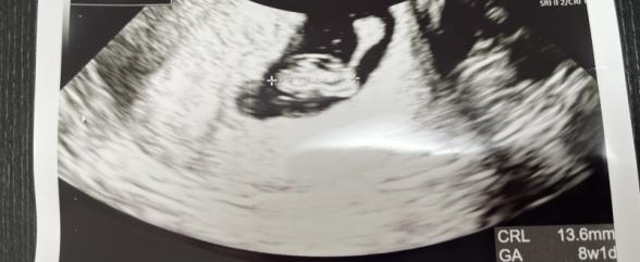 妊娠8週目くらいです。 エコー写真の中で 右上の丸から棒のように繋がっていますがこれは何でしょうか。 卵黄嚢だとしたらリング状なのかと思っていました。 何か心配になるようなことがあるのでしょうか。