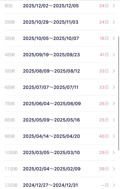 最終生理開始日は12月2日です😢