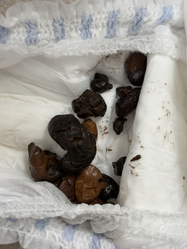 うんちが便秘がちなようですね。ころころうんちでもあり、便秘をしていることから黒っぽいうんちになっているのかと思いました。