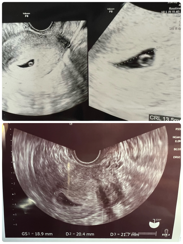 本日クリニック受診したところ、無事に胎芽、卵黄嚢、そして心拍が確認できました。