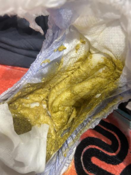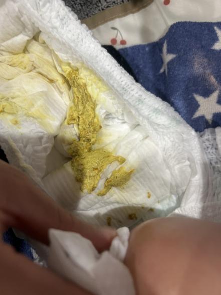 ミルクを飲んだあとや寝返りした後水っぽい音を出してうんちをします。