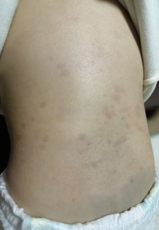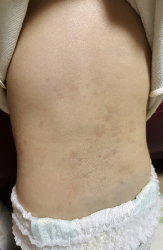 お子さんの背中、肩に見られる発疹についてですね。