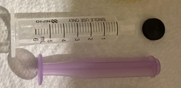 そもそも、食器洗剤で洗って、しっかり乾かすだけではダメなのでしょうか?(洗った後のため、分解後ですが、下記写真のシリンジです)(黒いのは、シリンジを動かす際の中につけるゴムです。)