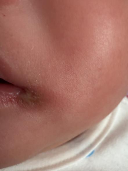 お写真を拝見する限りですと、少し膿んでいるようにもお見受けしますが、お子さんが気にしたり、痛がったりするご様子はありますか?