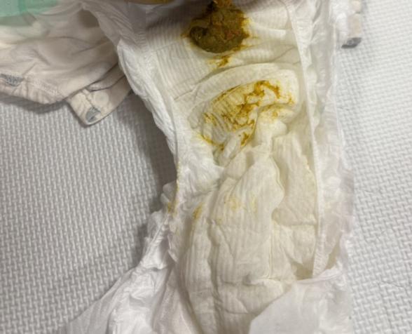 1枚目のうんちは水分不足ではなさそうですか?これも離乳食を固め(大きめ)にしたときに今までドロッとしてたうんちからこんな感じに変わったのですが、離乳食期になると硬くなるとネットでみたのでこんなものかと勝手に理解しており、その理解でよかったのか?と思いまして。