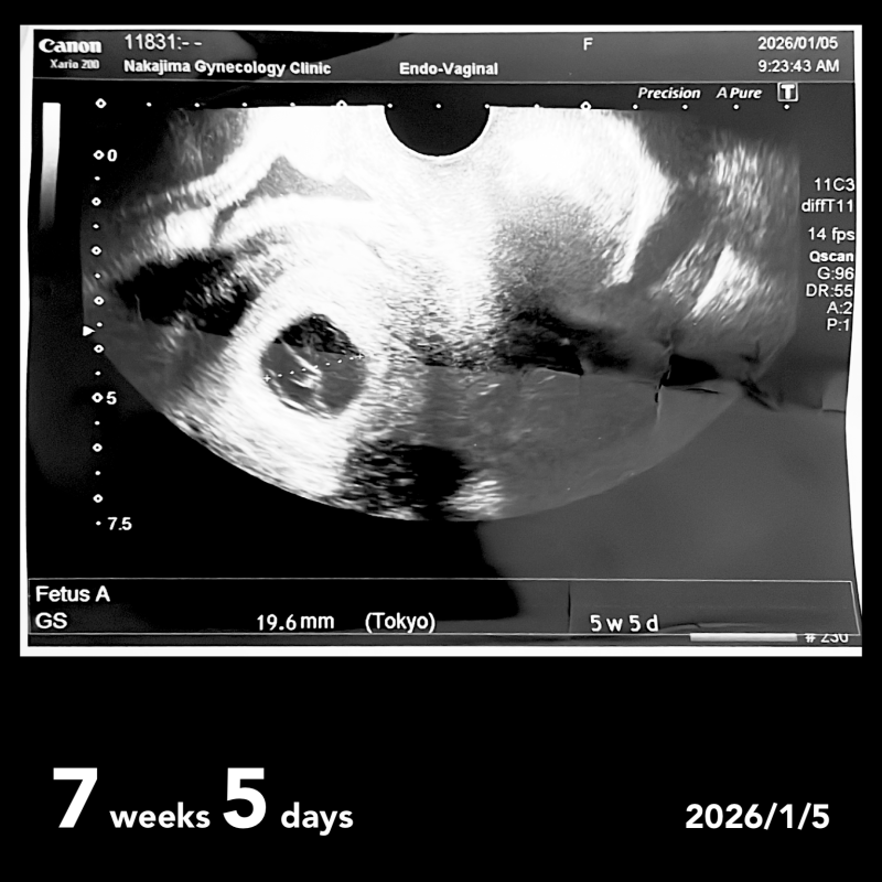 前回12月25日に6w1dで検診を受け、胎嚢15mm、 胎芽を確認できました。(5w1d相当)