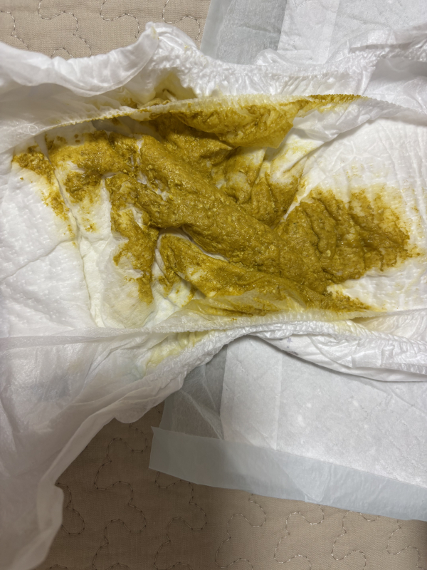 うんちの回数は1日1-2回、日によっては2日に1回の日もあります。5日前くらいからうんちが緩めで、色も緑から黄色に変わりました。