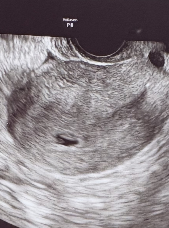 あわよくば心拍も確認できるかなー?と思っていましたが、胎嚢9.8mmとやや小さめでした。