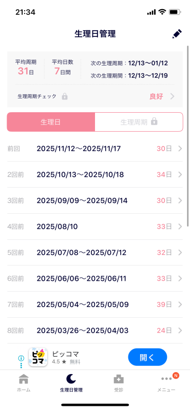 これまでの月経周期を拝見すると平均31日となっていて、34日ほど開くこともあったようなので、排卵のタイミングがずれていた可能性はあるように感じました。