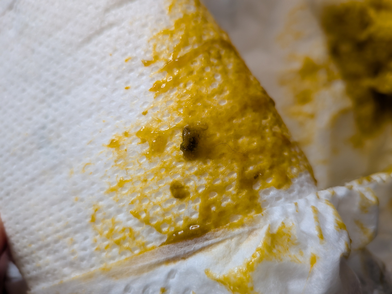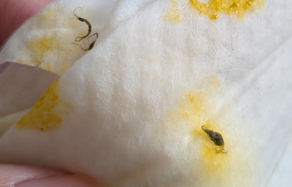 お子さんのうんちに毛玉と少量の出血が混じっていたのですね。