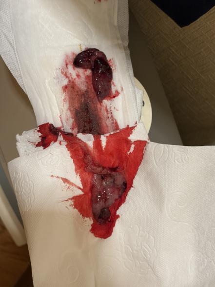 そして12日生理二日目くらいの血が出ました。さらに、いつもよりお腹が痛かったです。そして、13日の夜1時前くらいに白と赤の塊が出ました。胎嚢じゃないかなと思ってます。汚いですが写真一応添付しています。病院は14日行きます。