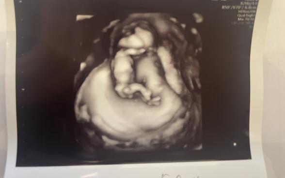 12週2日の時点で検診を受けた際のエコー写真で、胎児の頭の形が凹んでいるように見えて気になっています。