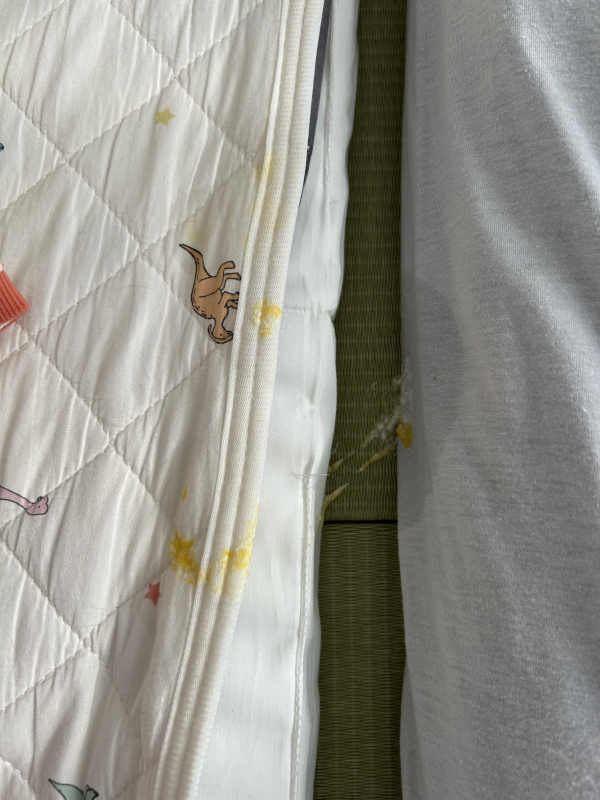 食後はずっと、寝返りや寝返り返りをして過ごしていました。12時頃から機嫌が悪くなり、怒ったように寝返りと寝返り返り、ずり這いを繰り返してました。(普段眠い時も同じようにします。)