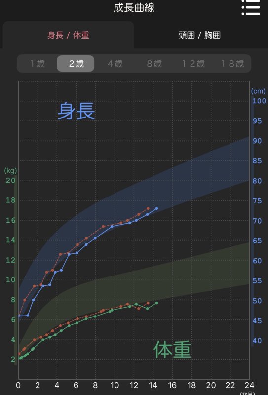 生まれてからずっと成長曲線ギリギリを這いながら成長しています。