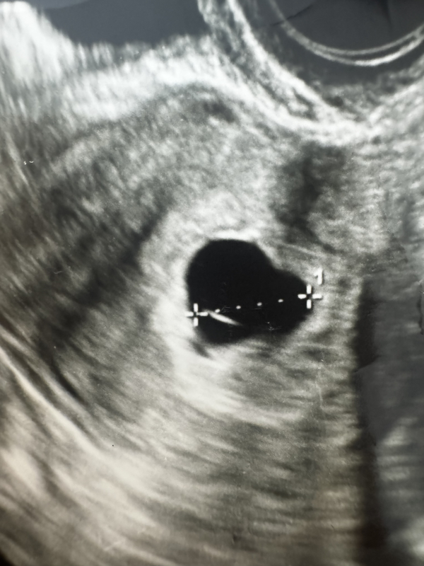 6w4dのエコーです。胎嚢しか見えませんでした。中の白い線はなんでしょうか?