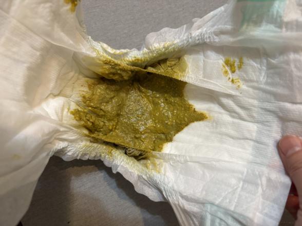 お写真のような緑色っぽいウンチが見られることはよくあります。性状も、便秘や下痢を繰り返す場合が多いと言われています。便秘や下痢を繰り返しながら、成長とともに、徐々に腸の力がつき、排便のペースができてきますよ。