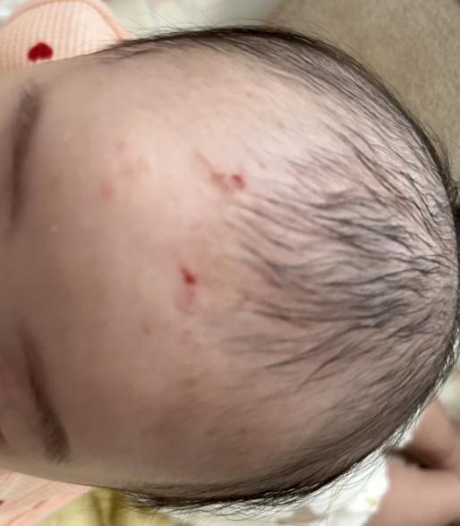 ここ最近で、5ヶ月の娘が頭や顔をかいてしまい、引っ掻き傷があとをたちません。血も出ていて固まった状態で
