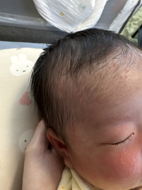 ニキビのように中心部が少し白、黄色のようなところも少しあるのですが、こちらも乳児湿疹でしょうか?