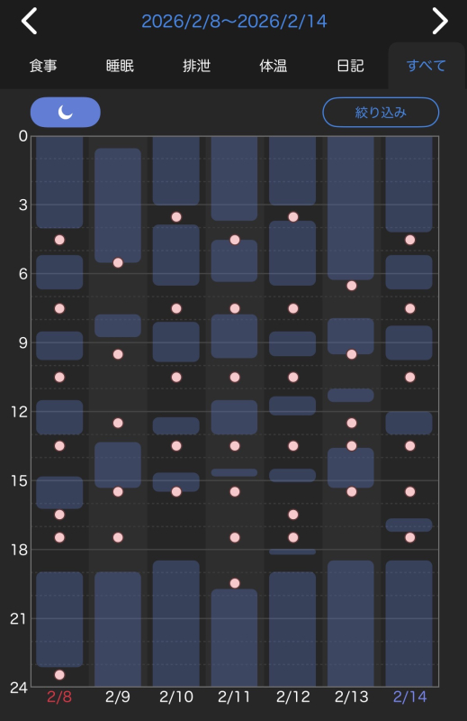 先週1週間の授乳と睡眠のログも添付させていただきます。