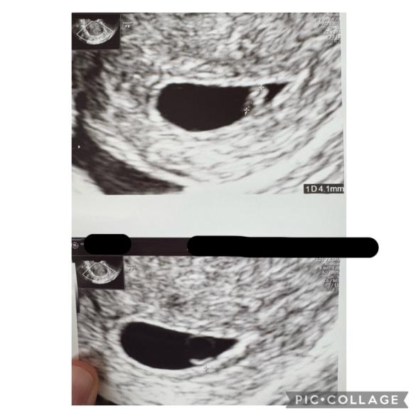 本日受診したところ、胎芽が4.1ミリで心拍も無事に確認できました。