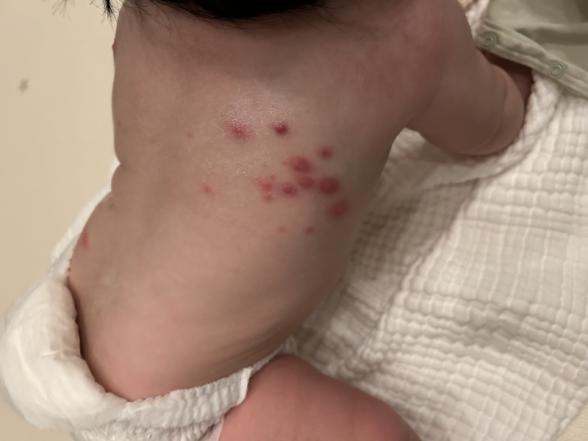 2月のはじめから、6ヶ月の娘の背中に赤いぷつぷつができていることに気がつきました。