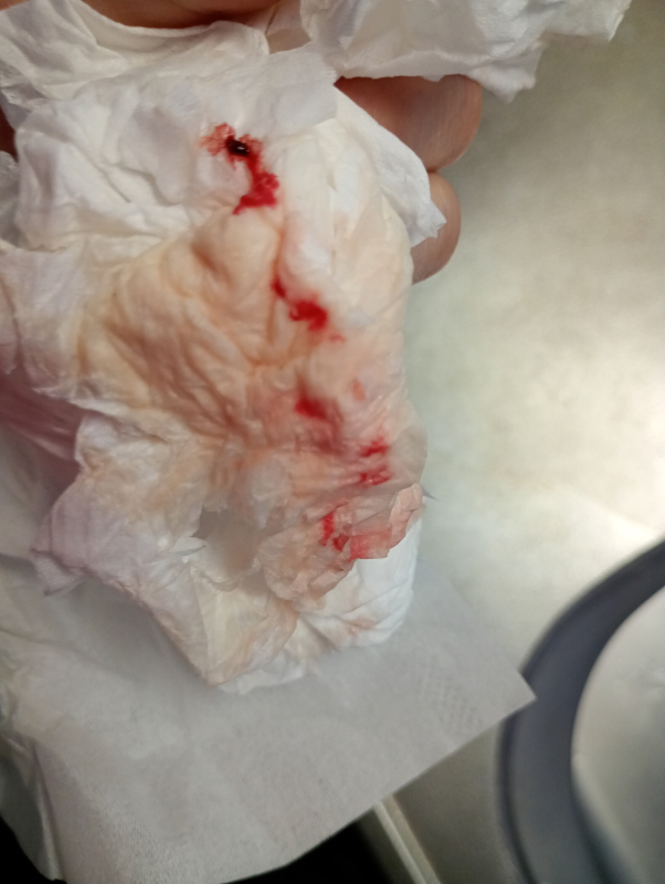 ただ、お腹の張りや痛みを伴ったり、出血量がどんどん増えてきたりする場合には、少し心配です。お写真を拝見する限りでは、それほど多く出血があるわけではないようにお見受けしますが、もし今後お腹の張りや痛みを伴ったり、出血量が増える、塊が出るなどがあれば、おかかりつけの産院でご相談なさってくださいね。お大事になさってくださいね。