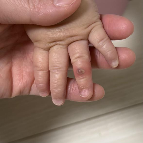 いつも指しゃぶりをするときにこの指をちゅぱちゅぱしているので、お薬が塗れないかもしれません。