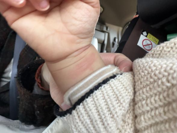 お子さんの手や手首、腕などに赤い発疹が出ていたのですね。