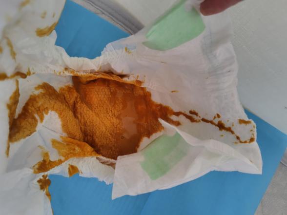 3月13日からオムツに染み込むほど水っぽいうんちです。