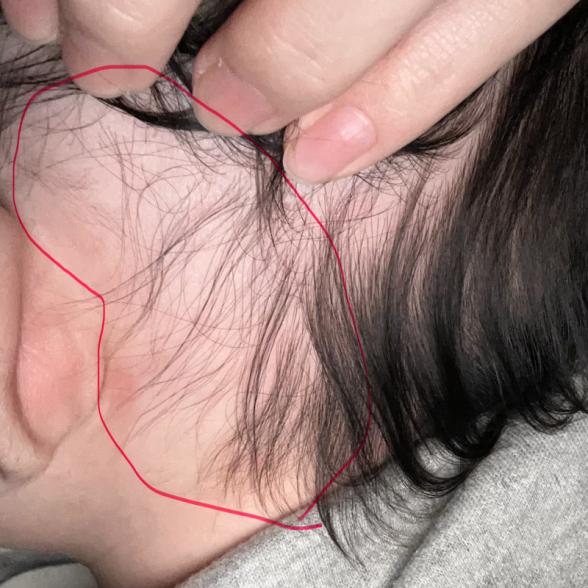 この耳周りがツルツルに広々と、毛穴もない状態でここまでハゲるのは大丈夫なのでしょうか。