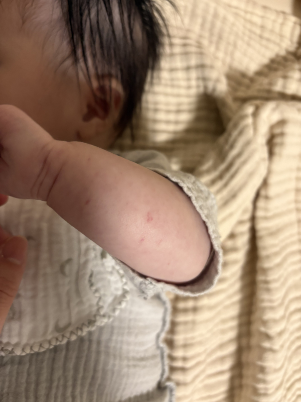 お子さんの場合には、毛細血管が脆弱なので、少し皮膚に負荷がかかったりすると、毛細血管が切れて、点状出血が見られることがあります。色の白いお子さんですと、特に点状出血が目立ちやすいこともあるかもしれませんね。