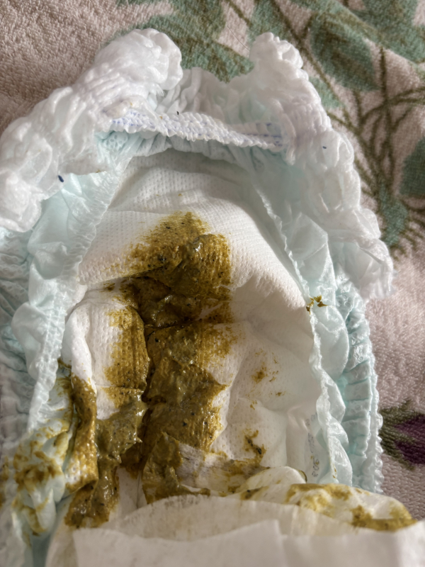 2〜3日便に黒い繊維のようなものが混じるのですが大丈夫なのでしょうか。離乳食は黒いのが出てからお休みしていました。病院で診てもらった方がいいのでしょうか