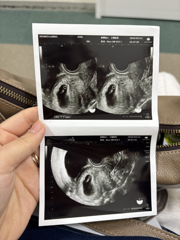 6週の時のエコーで胎芽と心拍確認できました。