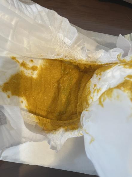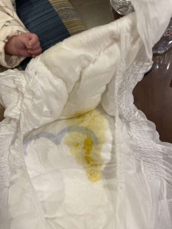 生後2ヶ月なのですが、ずっと1枚目の写真のようなうんちです。母乳ミルク混合ですが、母乳をあげているとうんちが緩いとのことだったので、今まで気にしてなかったのですが、他の方が下痢と判断されていたのでとても不安になり相談させていただきました。1度だけ2枚目のようなうんちの時もありました。