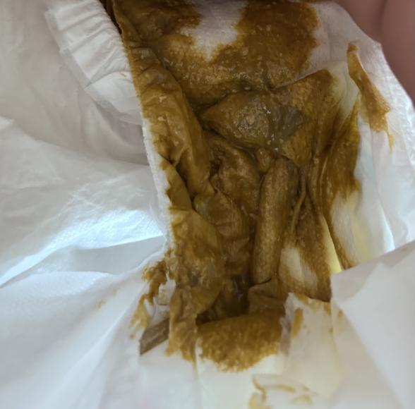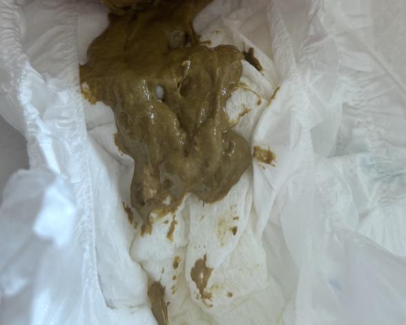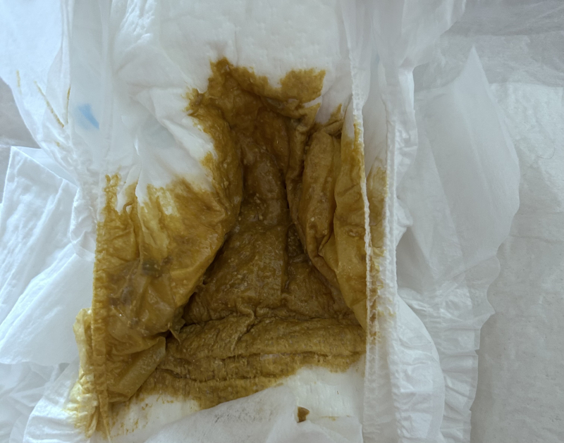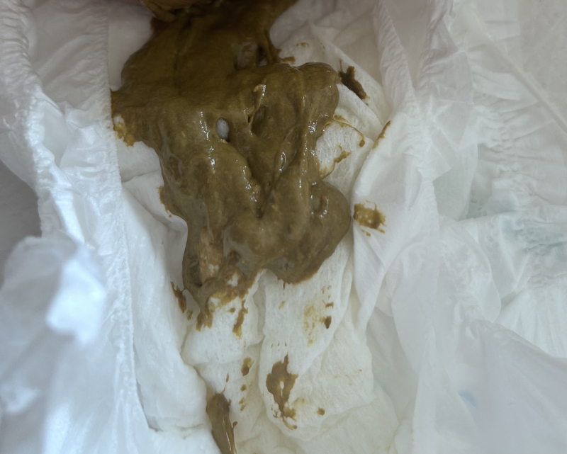 この時は粉ミルクが多めの時だったので緑のうんちです。