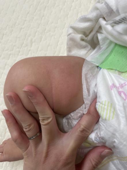 3日前に初めて赤ちゃん用のレッグウォーマーを履かせた後、写真のように太ももが赤くなりました。