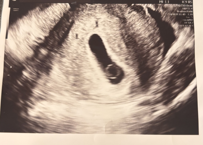 胎嚢は(22.?mm)に大きくなっており卵黄嚢は自分の目でも確認できましたが胎芽はこれかな?というものを先生が確認していましたがまだ心拍が見えないとのことでした。