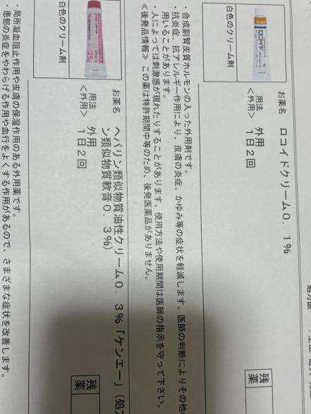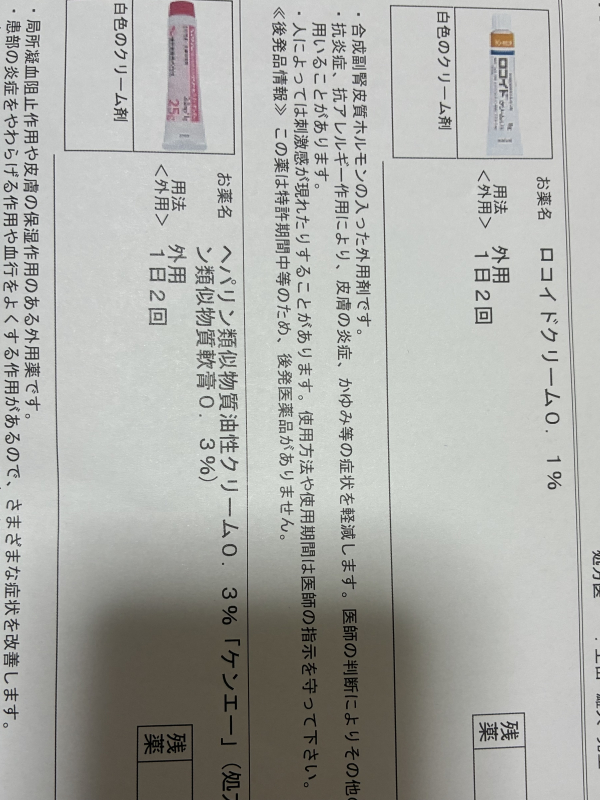 オンライン診療を受診したところ、乳児湿疹だとしてロコイドクリームとヘパリンを処方されました。