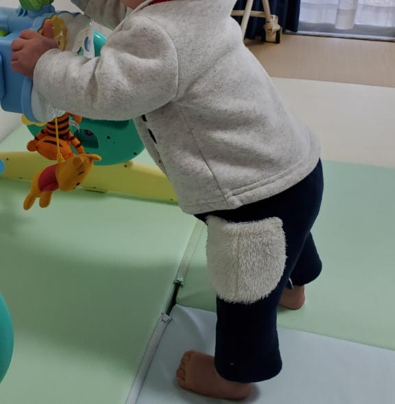 初めてハイハイをしたときは、両膝から下を床につくハイハイをしていたのですが、最近は片膝を立ててハイハイしています。(毎回右膝を立てています)
