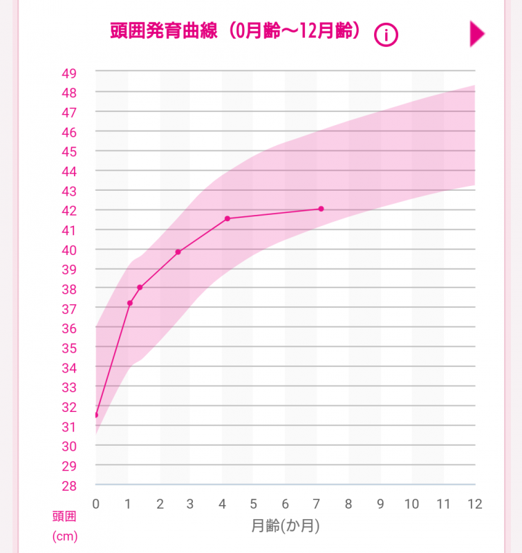 息子さんの頭回りの大きさの変化についてですね。前回の4か月健診の時と比べ緩やかですね。
