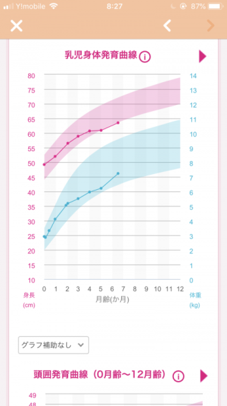 離乳食を始めたあたりから体重がぐんと増えてきていますね。