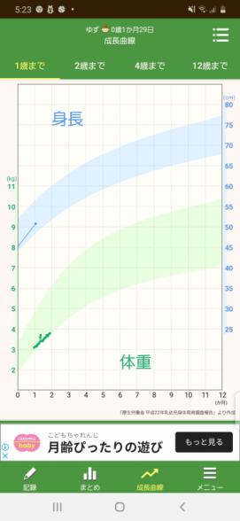 よって、お子さんは標準的範囲内の下限近いものの、曲線に沿ってお子さんなりに発育していることが分かりますので、順調に発育していると評価して問題ありません。