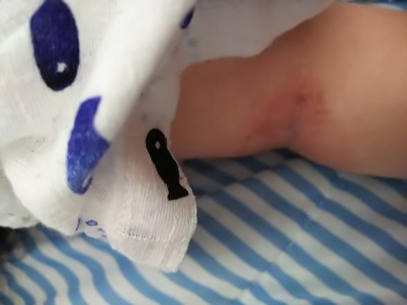 ベビーパウダーをしようされているということなのですが、毛穴を閉じ込めてしまうこともありますので、一度使用を控えて頂くといいと思います。清潔にしてワセリンをうっすらと塗るようにしていただき、保護してあげるといいと思いますよ。