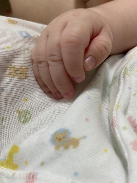 指しゃぶりをしょっちゅうしてるのですが、服を握ったりしているからか指の間に小さな繊維やホコリ、ゴミが 溜まっているのに気付きました。お風呂でキチンと洗っていても気付けば手にそれらが付いています。首もすわっていない赤ちゃんを抱っこしながら手だけ洗う事が出来ず、たまにお尻拭きで手を拭いてあげるのですが、綺麗に取れません。